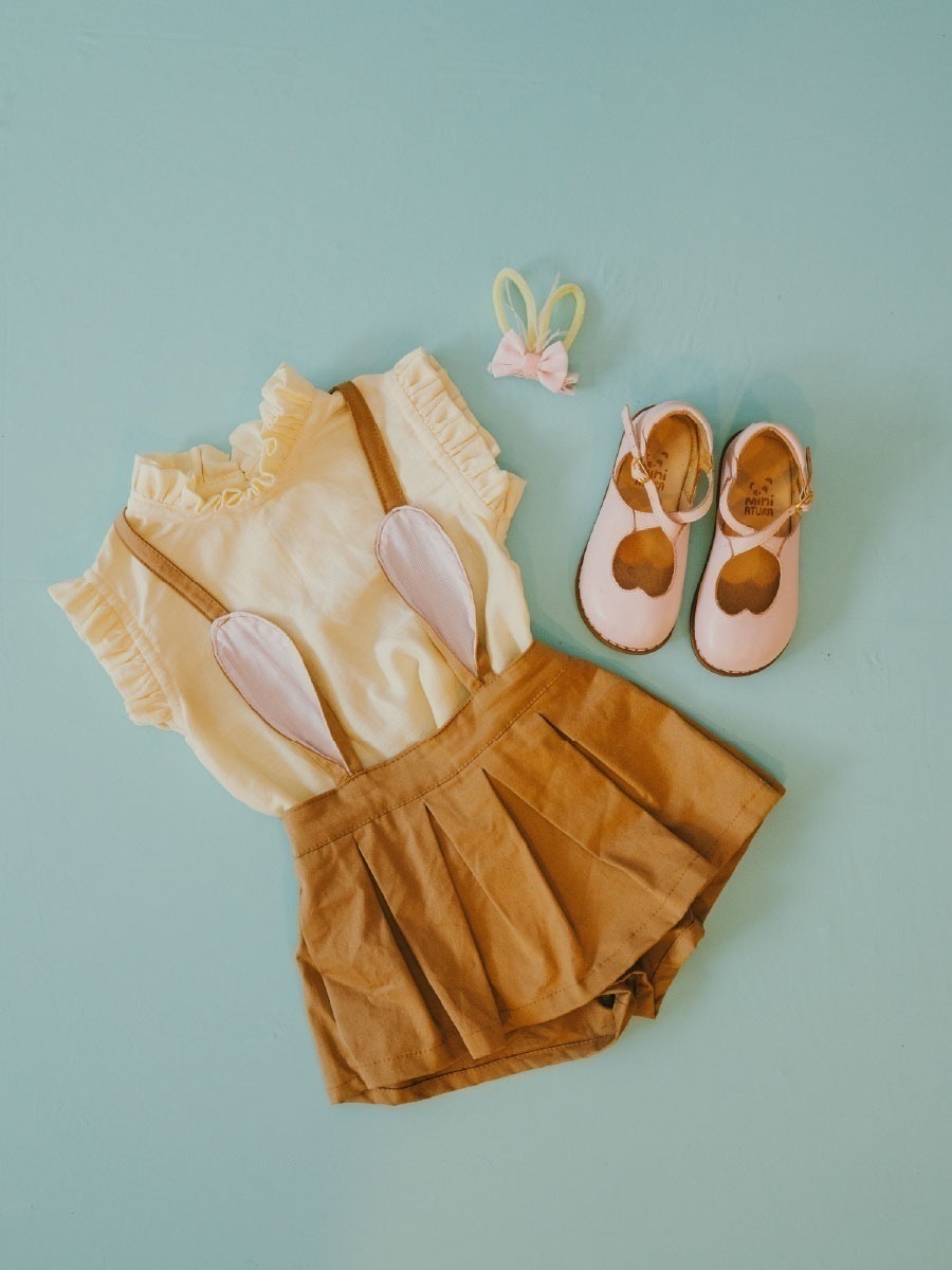 Esta peça é a definição de fofura e diversão, ideal para deixar a Páscoa da sua pequena ainda mais especial! Com um short saia cheio de pregas, sua criança vai brilhar enquanto corre e brinca.