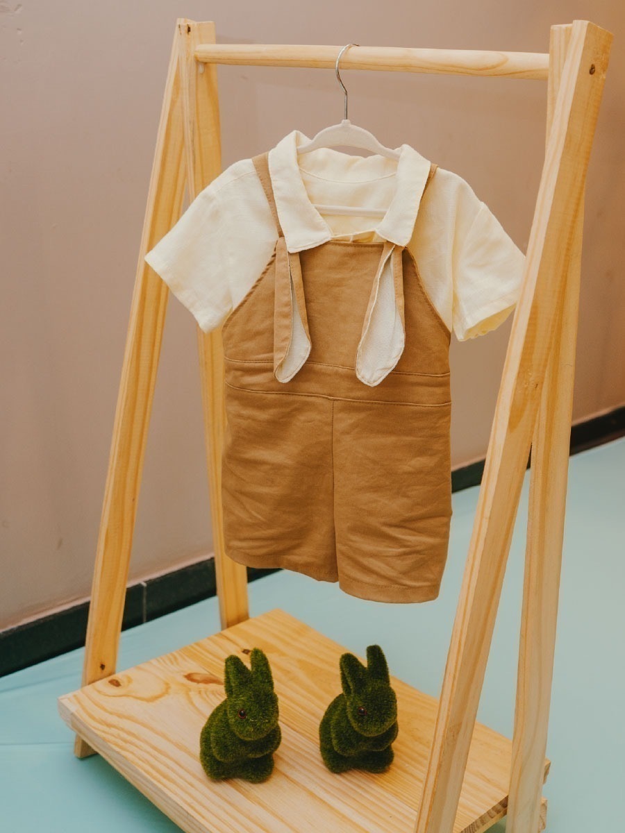 Detalhes que Encantam: As orelhas de coelho são o toque especial que fazem toda a diferença! E acredite, essa jardineira não é só bonita; é também super prática para as aventuras do dia a dia!